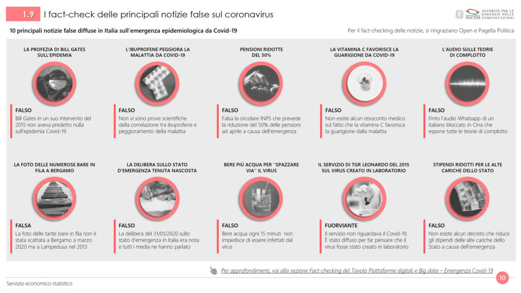 Veniamo adesso a quella che per me è una buona notizia, finalmente un lavoro serio ed ufficiale. Infatti l'AGCOM ha pubblicato un primo studio sull'osservazione della disinformazione sul coronavirus.